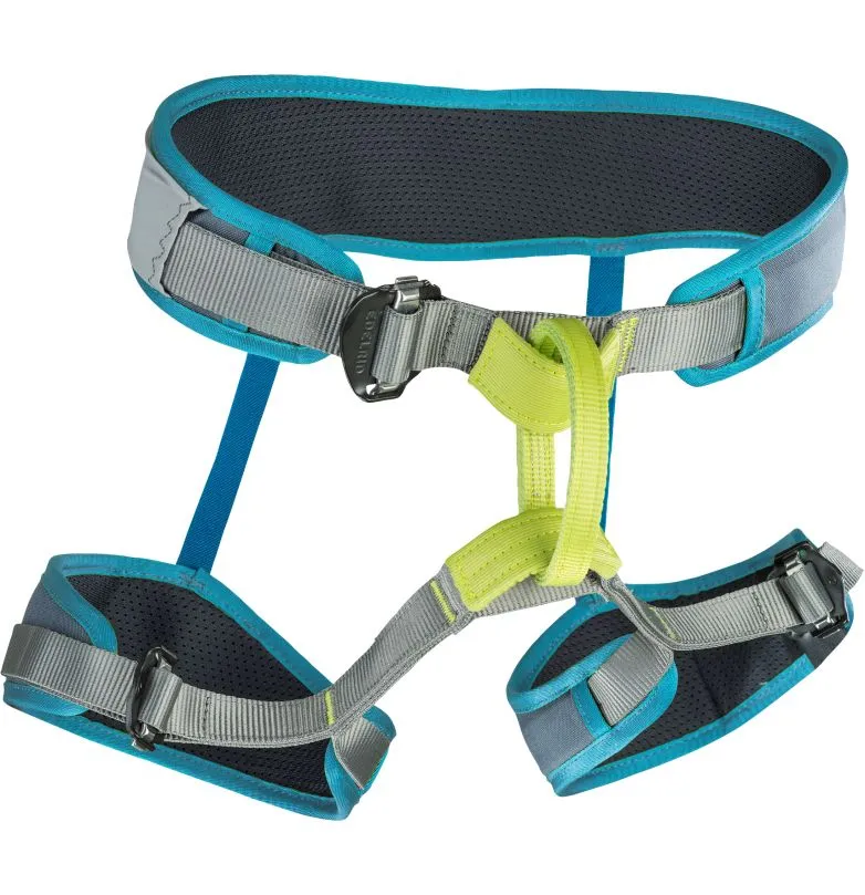 Die Easy-Glider-Schnallen des Klettergurts ermöglichen ein komfortables und sicheres Anlegen des Gurtes, Die Beinschlaufen haben R/L-Kennzeichnung. Verschiebbare Hüftpolster führen zu einer des Einbindepunktes. Der Einbindepunkt hat einen textilen Abriebschutz als Verschleißindikator. Der Klettergurt hat eine kleine Tasche am Hüftgurt und ist in verschiedenen Größen erhältlich.