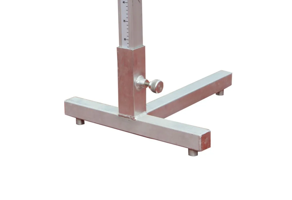 Die Lattenaufleger und Standpfosten aus Aluminiumprofil mit abgerundeten Kanten sind vollständig eloxiert. Die Maßskala ist im Profil in einer Nut eingelassen, sodass die Skala trotz regelmäßiger Höhenverstellung sehr gut lesbar bleibt. Die Höhenverstellung erfolgt ganz einfach über eine Feststellschraube. IWR und IAAF-zertifiziert.