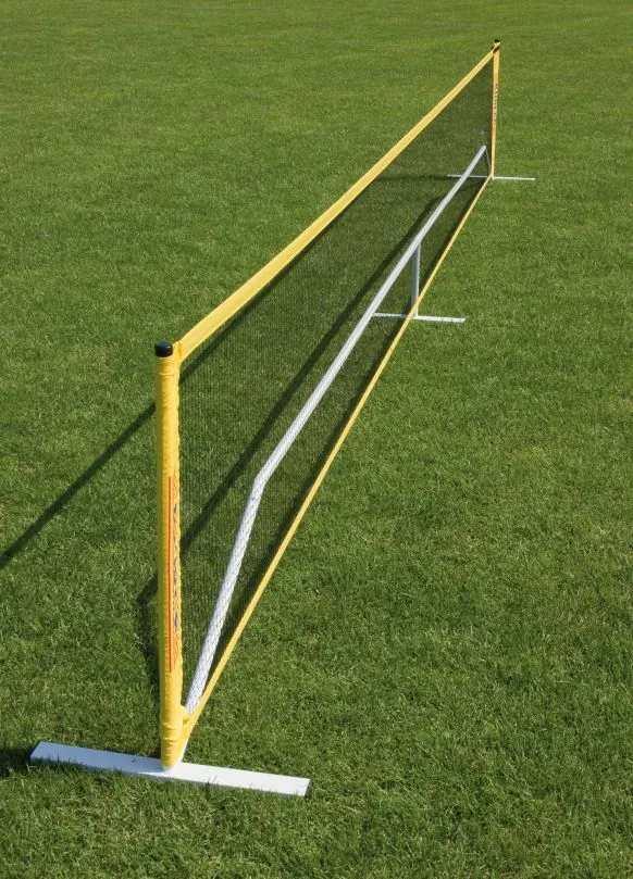 Die flexible Netzanlage ist in der Freizeit, im Vereinssport und in der Schule sehr gut einsetzbar. In der Länge ist die Netzanlage auf 3 m oder 6 m einstellbar. Die Höhe der Anlage kann auf 76,2 cm für Minitennis oder 1,5 m für Badminton eingestellt werden. Dank einem leichten Stecksystem lässt sich schnell und einfach ein Badminton Spielfeld oder ein Minitennis Spielfeld aufbauen – egal ob auf dem Parkplatz, im Garten, im Park oder am Strand. Selbstverständlich lassen sich mithilfe dieser Netzanlage auch viele andere Sportarten praktizieren, bei denen man ein Netz benötigt, wie z.B. Federfußball, das Hacky-Sack Spiel gegeneinander, Speedminton oder Indiaca. Lieferung inklusive Aufbewahrungstasche.