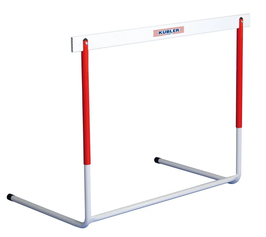 Schulen und Vereine, die eine preiswerte, aber dennoch gute Variante von Hürden benötigen, sind mit der Kübler Sport® Trainingshürde bestens aufgehoben. Die preiswerte und robuste Trainingshürde ist ideal für das Training. Der Bodenrahmen besteht aus gebogenen, pulverbeschichteten Stahlrohr und ist mit integrierten, festen Gegengewichtet ausgestattet. Die Säulen aus Aluminium sind per Federdruckmechanik einfach und schnell verstellbar. Insgesamt sind 6 verschiedene Höhen möglich. Die Hürdenlatten bestehen aus witterungsbeständigem Kunststoff und sind lange haltbar.