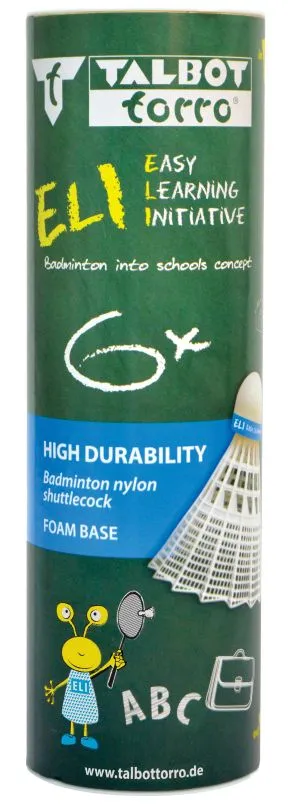 Robuster Federball aus hochwertigem weißen Nylon-Material und geschäumtem Fuß, mittlere Geschwindigkeit. Seine hohe Haltbarkeit und gute Flugeigenschaften machen ihn zum idealen Ball für das Training und den Schulsport. 6er Dose.